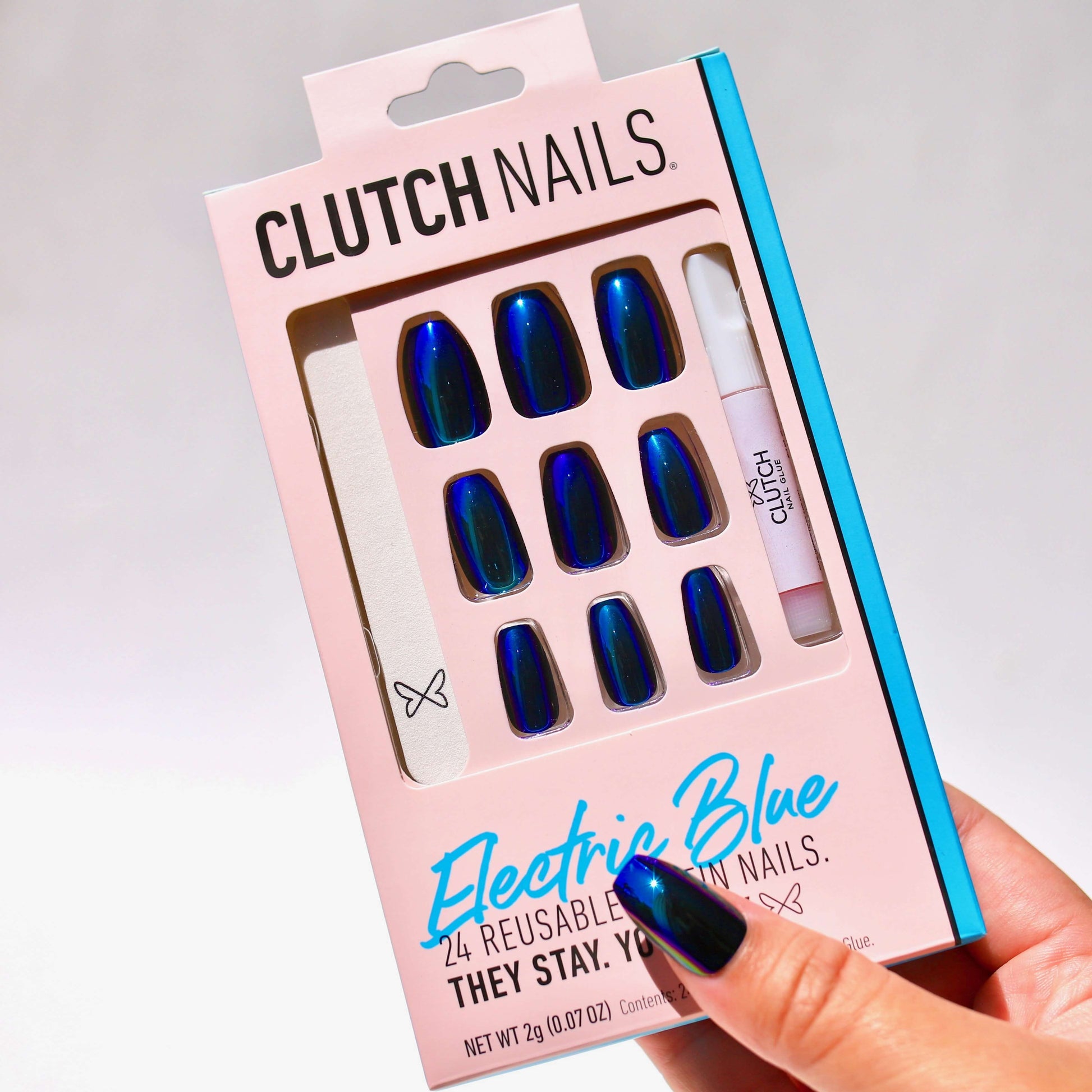 - Apply a drop of glue to the bottom of the Clutch nail and a drop of glue to your natural nail.